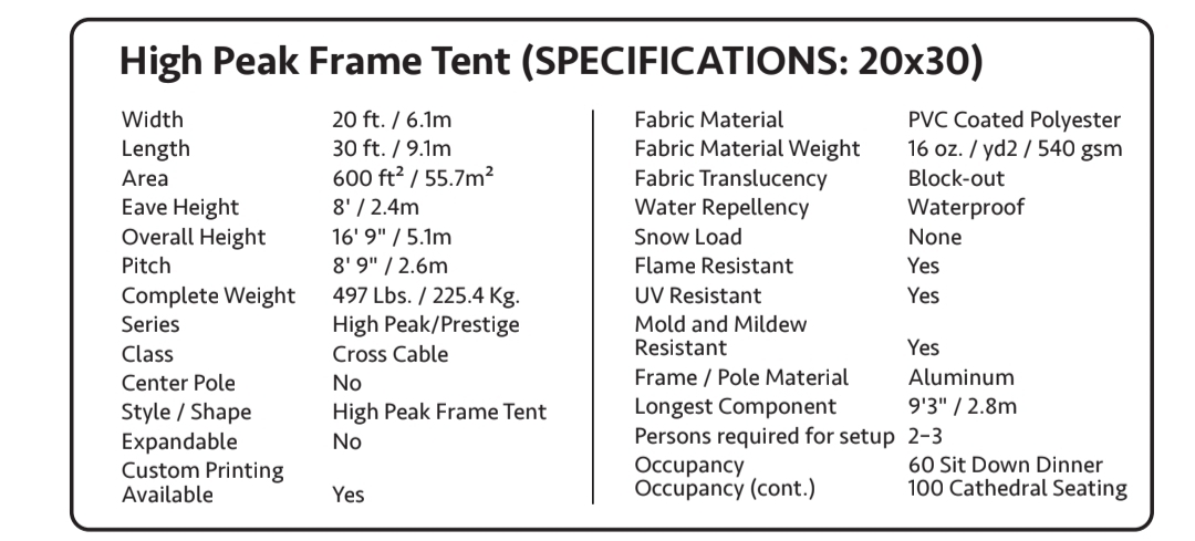 The size and elegant look make them ideal for outdoor events such as weddings, receptions, graduations, and other events that need to accommodate a large number of guests.