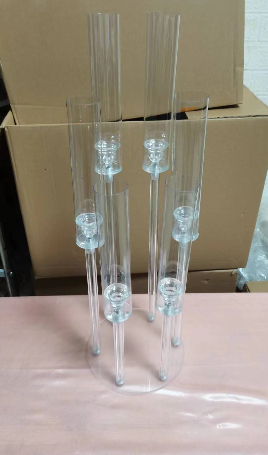 Add a touch of charm to any tablescape with the elegance and grandeur of our candelabra centerpieces. This table decoration can steal the show by creating a compelling focal point that makes weddings, banquets, galas, and other upscale celebrations even more special. This beautiful decorative centerpiece mimics the beauty of a classic candelabra but is made from premium acrylic for a lightweight and modern finish.